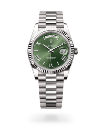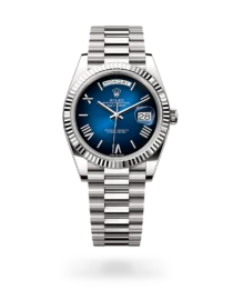- Bracelet: President-style bracelet with semi-circular three-piece links in 18k black
